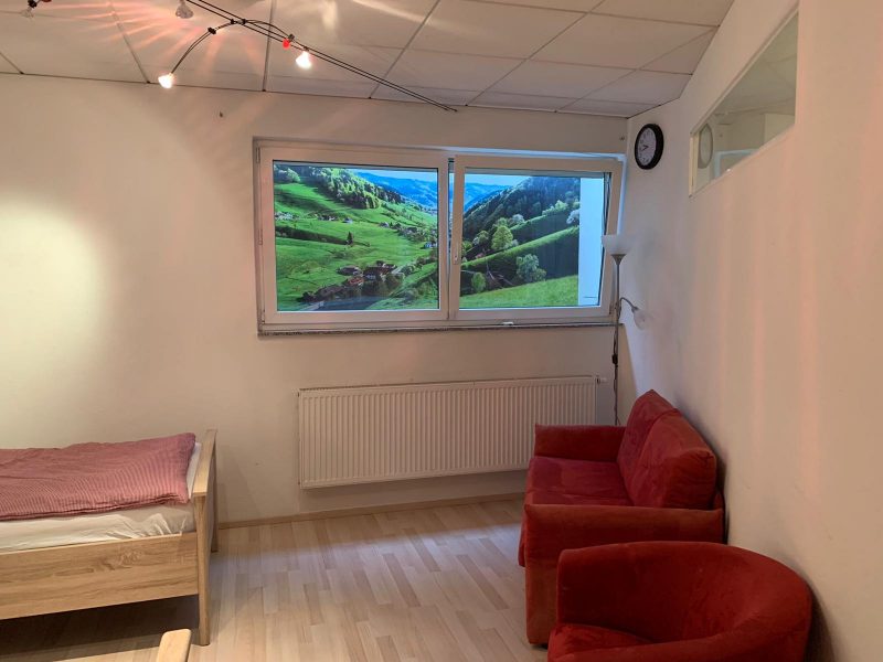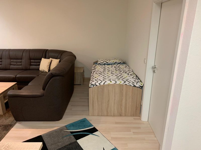 Großräumige Wohnung im Untergeschoss mit separaten Schlafzimmern, Abstellraum und großer Küche -Esszimmer. Wohnzimmer mit Schlafgelegenheit.